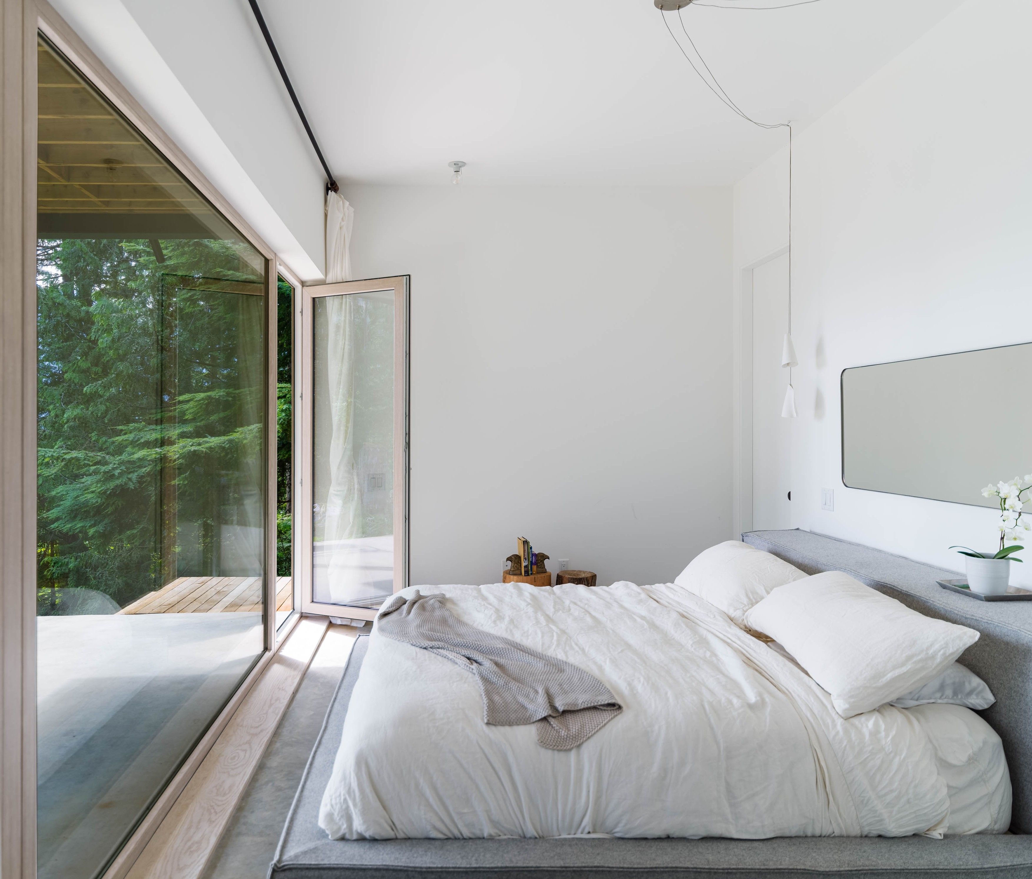 Every element was considered for both function and beauty—from the custom curbless tub to the private breezeway and dual-level decks that extend the living space outdoors. Exterior materials offer contrast and texture, pairing black corrugated metal siding with white-washed, tight-knot cedar soffits. Goat Ridge is a calm, modern refuge designed for stillness and solitude, with every detail crafted to make staying in feel better than going out.